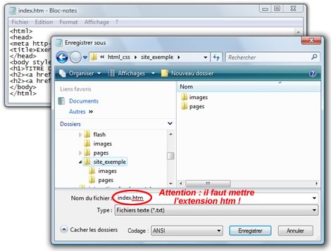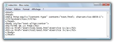 La page d'index (le sommaire) doit être créée à l'aide d'un éditeur de texte.